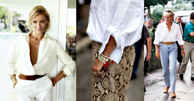 Бялата риза става емблематична и неразделна част от гардероба на едни от най-добре облечените популярни жени като Шарън Стоун, Джулия Робъртс, Камерън Диас, Кейт Мос, принцеса Даяна, Виктория Бекъм, Ема Уотсън.